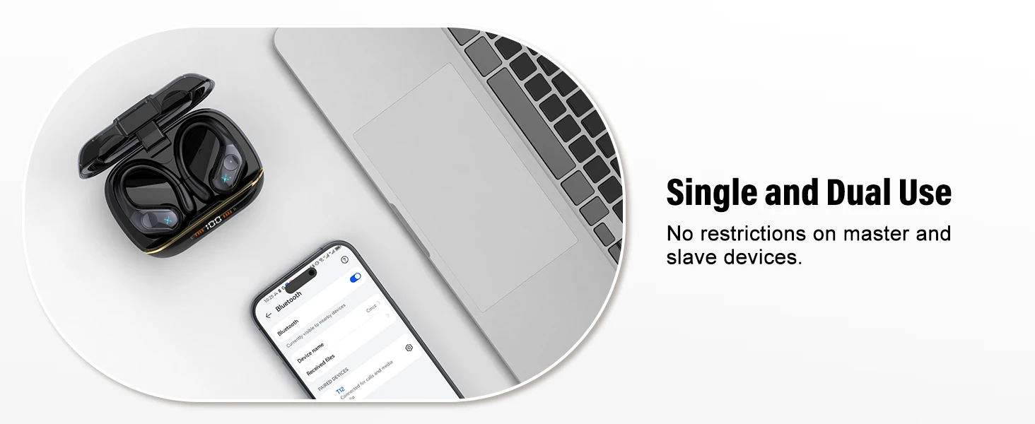 تتميز سماعات الأذن Lahtiwey التي تعمل بتقنية البلوتوث بشريحة بلوتوث 5.4 متقدمة لنقل سريع للغاية، واتصال قوي للصخور، ونطاق موسع.استمتع بتجربة موسيقى ومكالمات لا مثيل لها وسلسة كالحرير، بدءًا من انقطاعات الإشارة أو تدهور الصوت.بعد الاقتران الأولي، افتح علبة الشحن لتوصيل سماعات الأذن اللاسلكية تلقائيًا بهاتفك عبر تقنية Hall، مما يبسط العملية ويوفر وقتًا ثمينًا.