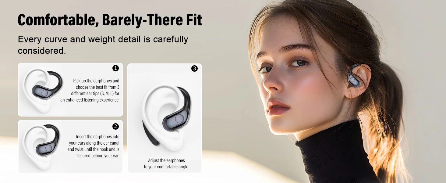 تم تصميم سماعات الأذن بشكل مريح وتأتي مع 3 أحجام مختلفة من أطراف الأذن الناعمة (S/M/L)، والتي تناسب معظم ملامح قناة الأذن.ستكون سدادات الأذن مريحة للغاية وليس من السهل أن تسقط عند ارتدائها.ستبقى أيضًا في مكانها، سواء من خلال التمارين المكثفة أو الاستخدام لفترة طويلة.وفي الوقت نفسه، تتمتع سماعات الرأس اللاسلكية بتصنيف IP7 لمقاومة الماء، والذي يمكنه مقاومة العرق والمطر ورذاذ الماء البسيط، وهو مناسب للتمرين والجري.