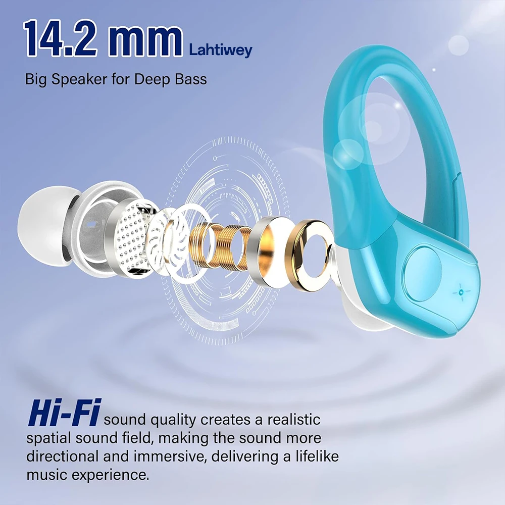 تعتمد سماعات الأذن اللاسلكية الرياضية وحدة فك ترميز الصوت SBC/AAC ومجهزة بمشغل مكبر صوت بغشاء 14.2 مم، والذي يمكن أن يوفر نطاق صوت قوي وواسع، مما يوفر صوتًا واضحًا وجهيرًا عميقًا.سماعات الأذن المانعة للضوضاء مجهزة بـ CVC8.تقنية 0 لتقليل الضوضاء، والتي يمكنها مراقبة وقمع الضوضاء في البيئة المحيطة في الوقت الفعلي، مما يسمح لك بالانغماس في عالم موسيقى نقي وواضح والاستمتاع بالاستماع المتواصل.