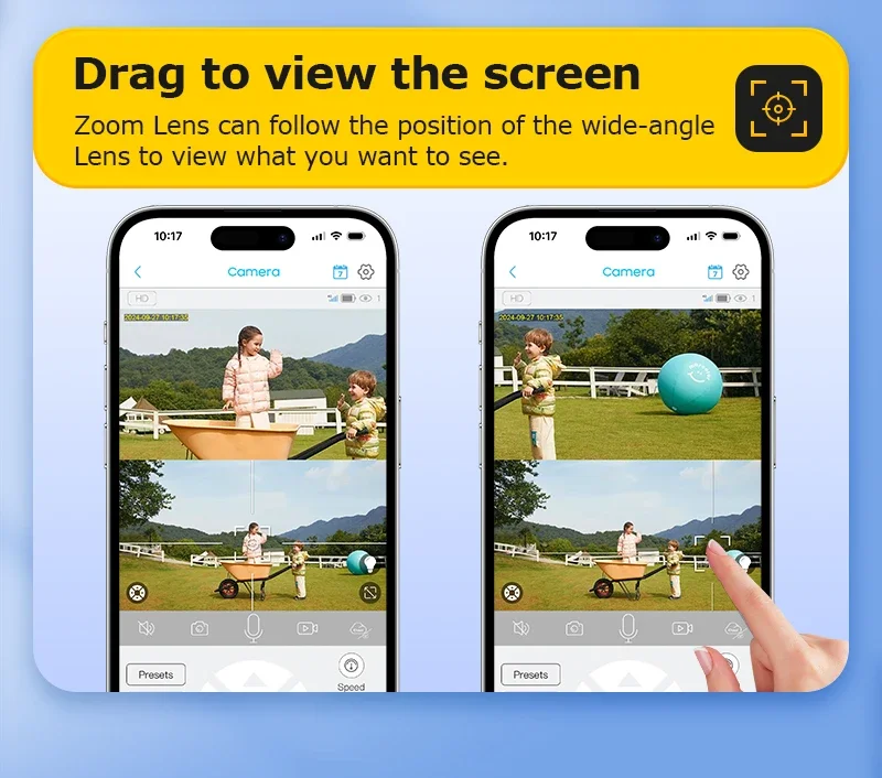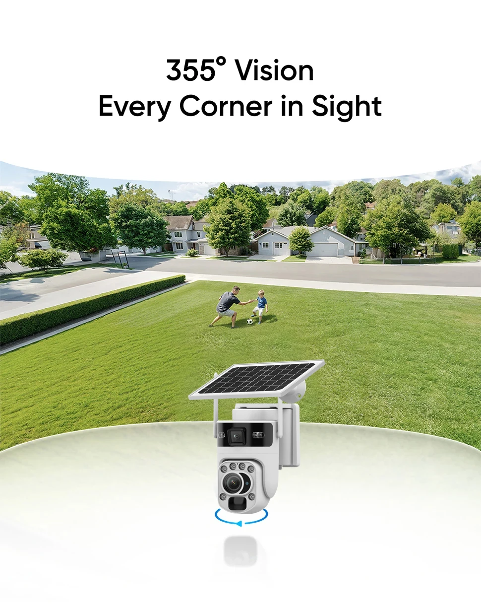 قل وداعًا للأماكن العمياء مع تغطية منزلية كاملة.استمتع 355° المراقبة تحقق من الشرفة الأمامية لديك، وراقب الفناء الخلفي لمنزلك، وراقب الممر بسهولة.