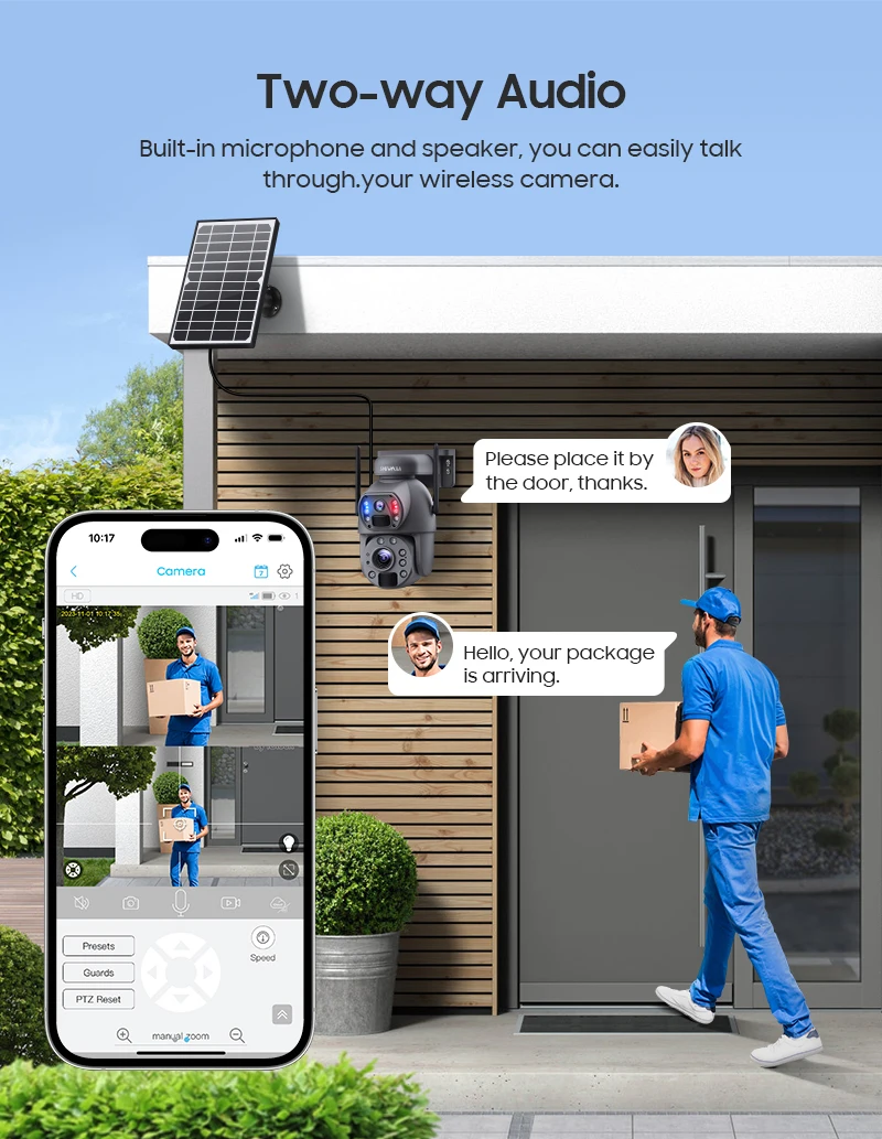 ميكروفون ومكبر صوت مدمجان، يمكنك التحدث بسهولة من خلال الكاميرا اللاسلكية.