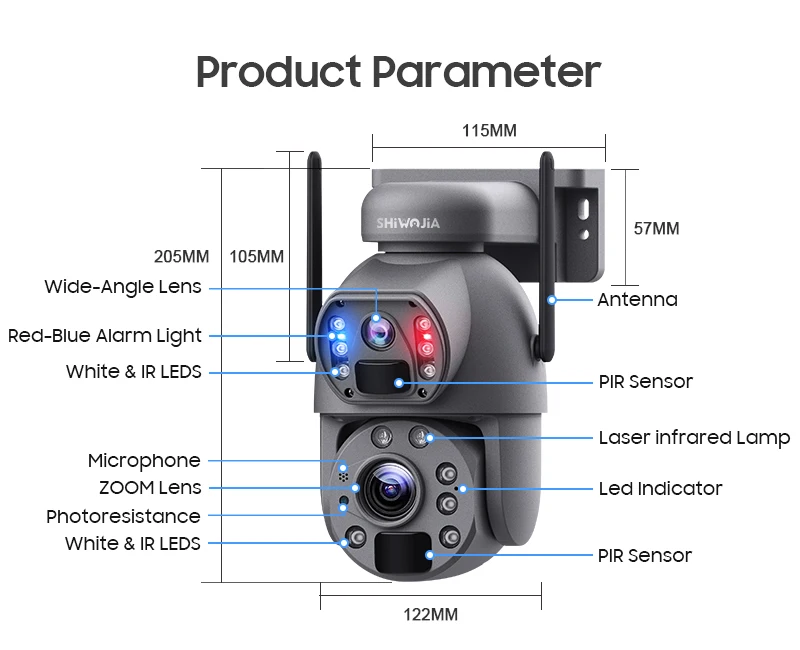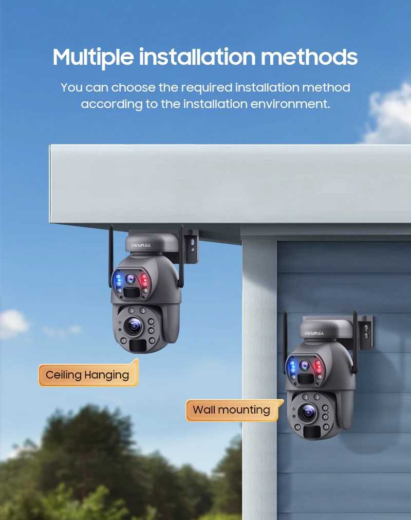 يمكن تعديل عدسة الكاميرا ذات الزاوية الواسعة يدويًا إلى 350°.عدسة تكبير PTZ يمكنك التحكم في دوران 355° أفقي و 90° عمودي عن طريق التطبيق.