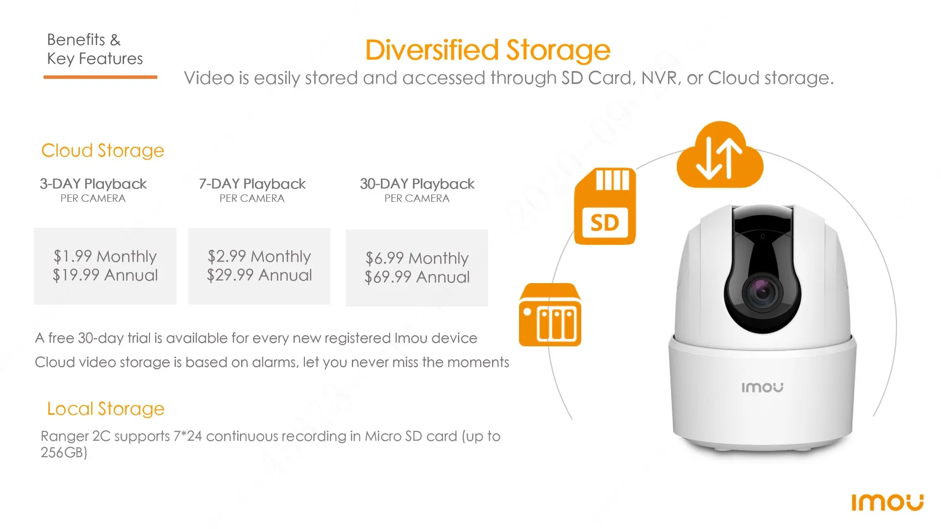 يتم تخزين الفيديو بسهولة والوصول إليه من خلال بطاقة SD أو NVR أو التخزين السحابي.