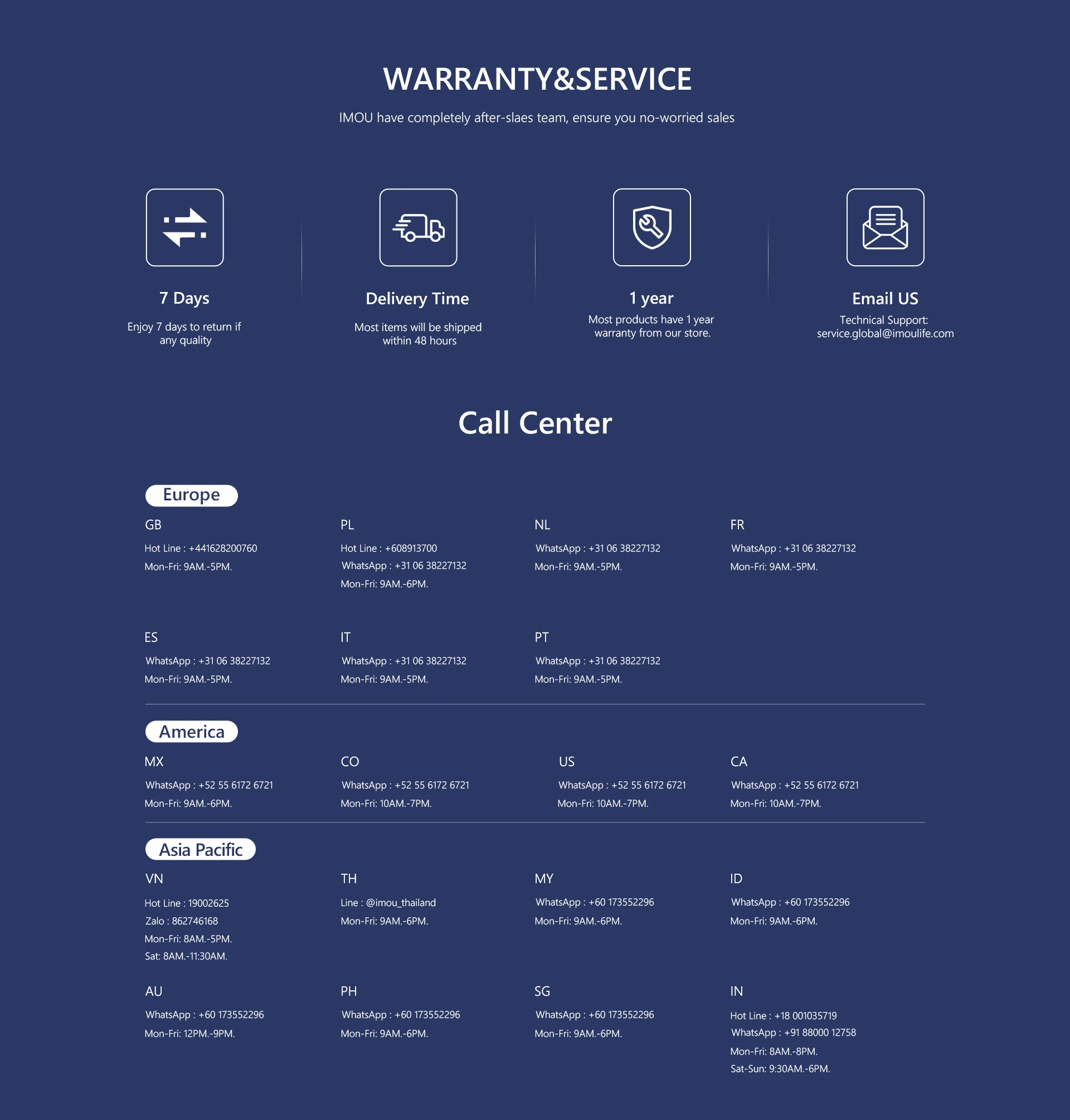 1. لدى Imou فريق صيانة احترافي لما بعد البيع في العديد من البلدان والمواقع.